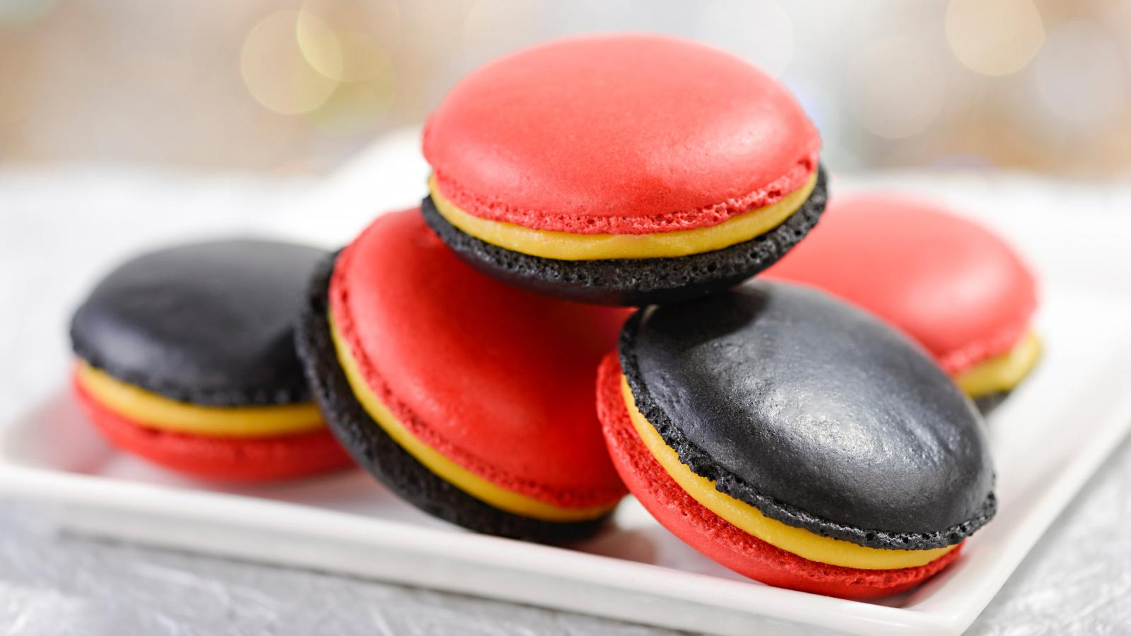 Inspirados no filme ‘Os Incríveis’ da Pixar, Os Incríveis Macarons, são feitos nas cores dos uniformes dos super-heróis e são recheados de ganache de manga.