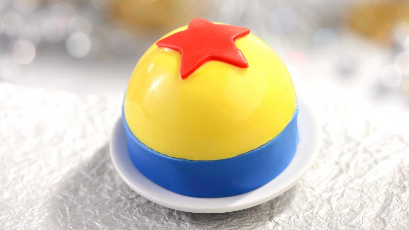É claro que o filme Toy Story não poderia ficar de fora! Esta sobremesa é inspirada na bola de brinquedo do filme e é feita de mousse de manga, bolo de banana, chocolate caramelo e flocos de arroz.