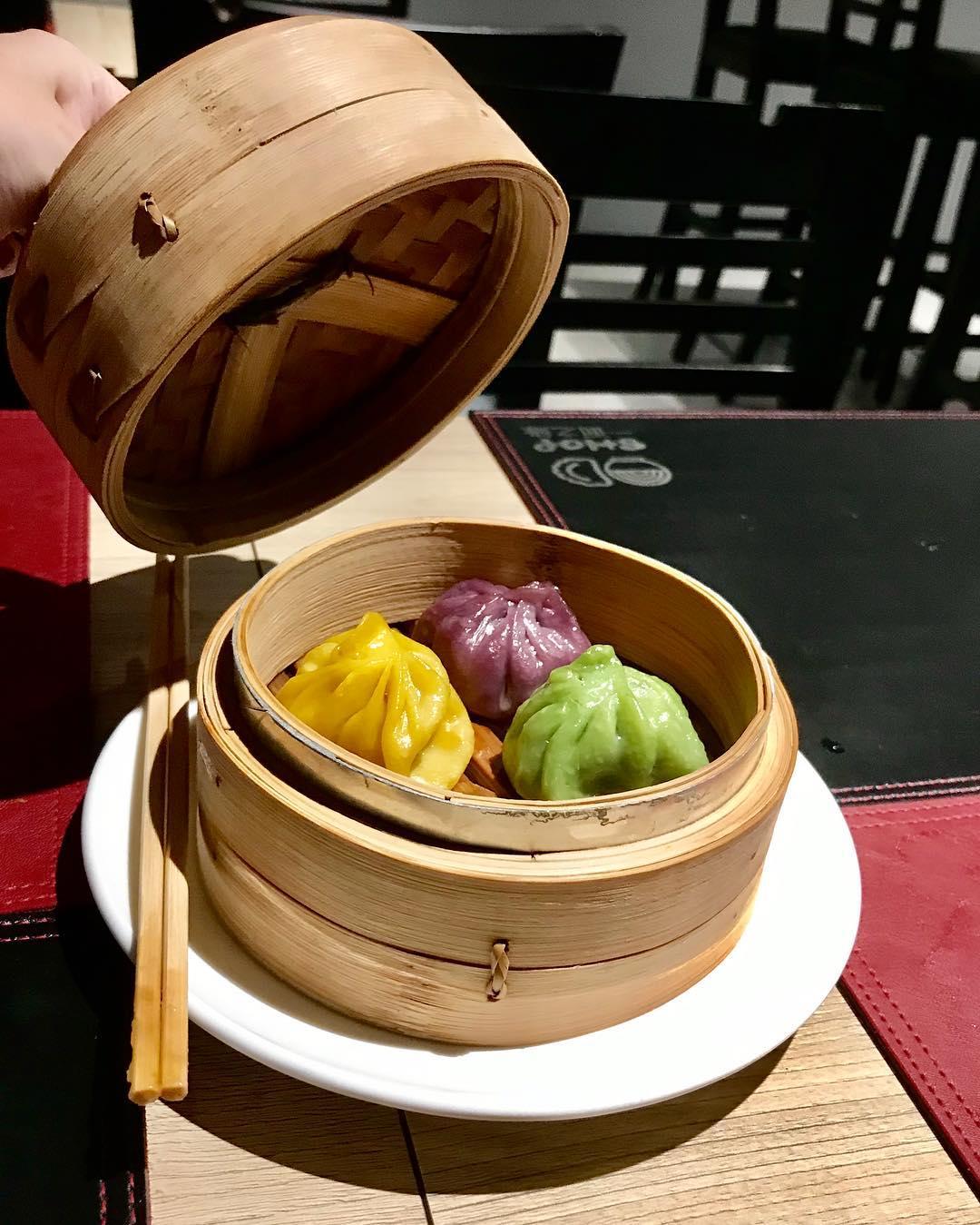 Aberto há poucos meses, o Noodle Shop BR (@NoodleShopBR)é moderno e colorido, com as paredes de vidro e espelhos do salão repletos de recados dos clientes que passaram por lá. O menu, enxuto e com bons preços, oferece os dumplings como entrada em três cores originárias de pigmentos naturais: roxo (beterraba), verde (espinafre) e amarelo (abóbora).